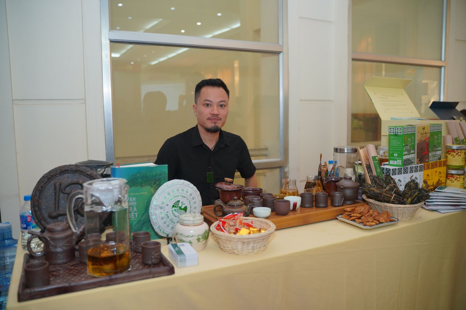 Nghệ nhân Nguyễn Văn Viên trực tiếp pha May Trà shan Tuyết, mang đến trải nghiệm thưởng trà độc đáo tại hội thảo.