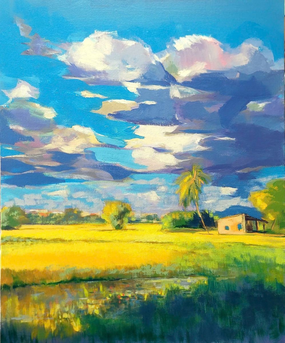 Với thể loại tranh phong cảnh để tránh "quê" khi tả cảnh quê, để hài hoà giữa các yếu tố hoài niệm và hiện đại, để xoá đi phần nào sự quen thuộc, trùng lặp vẫn thường thấy... việc tập trung đẩy “mây” lên trong sáng tác là một lựa chọn có chủ ý của hoạ sĩ Vũ Trọng Anh.