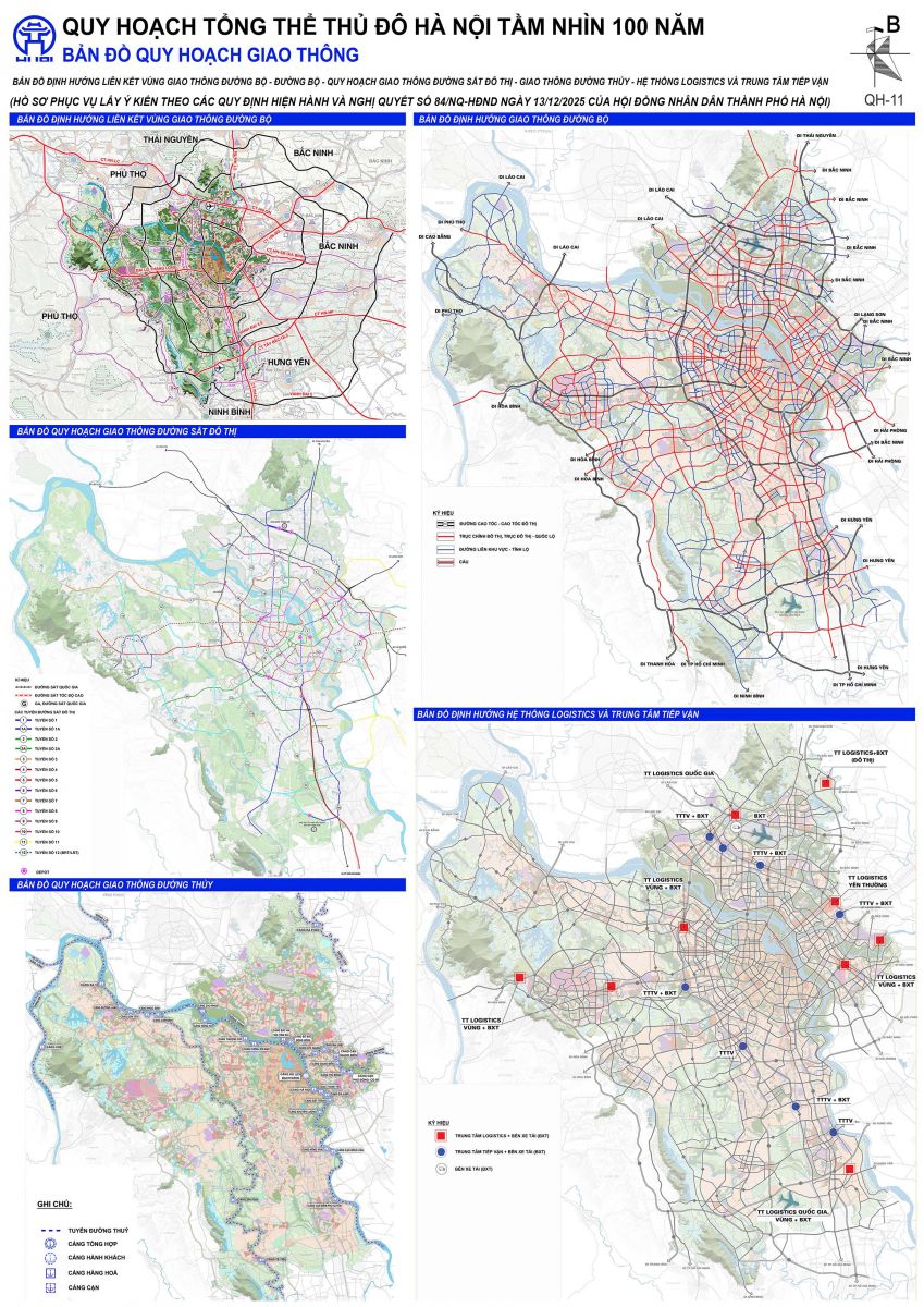 Pano số 11 “Quy hoạch giao thông” trong TLQH trình bày các nội dung: sơ đồ liên kết giao thông đường bộ vùng; quy hoạch mạng lưới đường bộ, đường sắt, đường thuỷ nội đô và trung tâm tiếp vận, logistics (bao gồm hiện trạng và dự kiến). Đáng chú ý là các bản vẽ mô tả các loại đường, cầu, cảng, trung tâm tô màu khác nhau nhưng đặt trên cùng cùng một lớp (layer), không thể hiện việc phân cấp tầng bậc, phân tách hiện trạng và các giai đoạn phát triển. Từ đó không có hiệu ứng tương tác/kéo đẩy các loại hình hoặc phân chia thứ tự ưu tiên triển khai trong cùng một giai đoạn (ví dụ như làm sân bay thì cần có cùng tiến độ đầu tư đường kết nối tốc hành nối sân bay với trung tâm thành phố). Quy hoạch tổng thể yêu cầu tích hợp các lĩnh vực, nhưng trong bản vẽ quy hoạch giao thông không tích hợp với quy hoạch hạ tầng kỹ thuật và mô hình phát triển đô thị theo định hướng giao thông (TOD); Quy hoạch mạng lưới đường sắt đô thị không đồng bộ với quy hoạch công trình ngầm đa dụng... Quy hoạch giao thông thể hiện riêng rẽ từng loại hình, không phân biệt quan hệ chính/phụ, trước/sau, khiến thông tin rời rạc, phân rã. Quy hoạch giao thông là mạch máu của đô thị, cần được định hình theo từng giai đoạn phát triển.