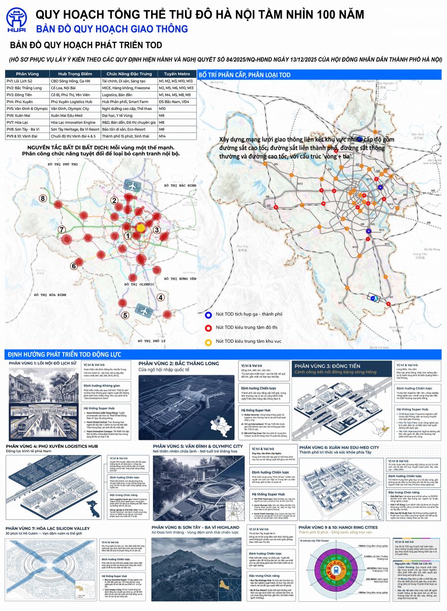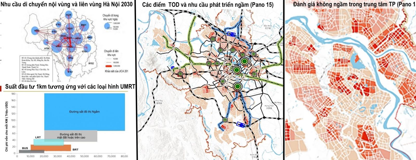 “Quy hoạch mạng lưới đường sắt đô thị ” (Pano 13) không thể tách rời với “Quy hoạch không gian ngầm, đa tầng đa lớp ” (Pano 15),“ Quy hoạch hạ tầng kỹ thuật toàn thành phố ” (Pano 12) và “ Phát triển TOD” (Pano 14)
