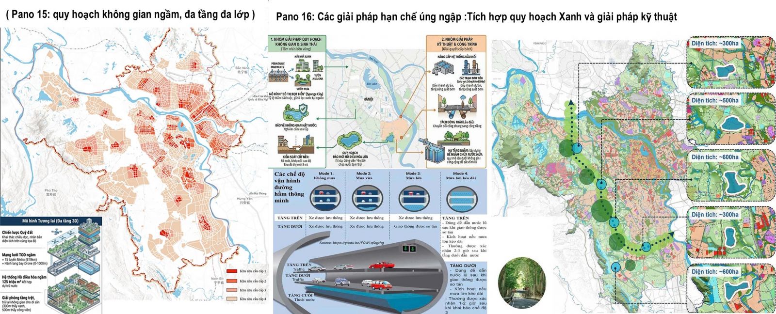 “Quy hoạch giao thông” (Pano 11) liên quan tới “Quy hoạch hạ tầng kỹ thuật toàn thành phố” (Pano 12) và “Phát triển TOD” (Pano 14)