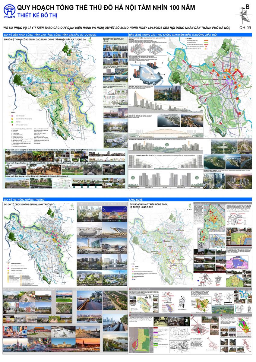 Hà Nội có ngàn năm lịch sử tồn tại và phát triển trên nền tảng những giá trị vĩnh cửu và đổi thay, nhờ có “ở vào nơi trung tâm trời đất, được thế rồng cuộn hổ ngồi, chính giữa nam bắc đông tây, tiện nghi núi sông sau trước. Vùng này mặt đất rộng mà bằng phẳng, thế đất cao mà sáng sủa, dân cư không khổ thấp trũng tối tăm, muôn vật hết sức tươi tốt phồn thịnh. Xem khắp nước Việt đó là nơi thắng địa, thực là chỗ tụ hội quan yếu của bốn phương, đúng là nơi thượng đô kinh sư mãi muôn đời” [2]. Ngàn năm qua, tổ tiên ta đã chắt chiu gây dựng nên làng xóm ruộng vườn, hồ ao rừng núi, đình chùa đền miếu. Trong Pano 08, 09 & 10 “Thiết kế đô thị” của TLQH đã nhặt nhạnh những hình ảnh vô hồn dán vào quê hương xứ Đông, xứ Đoài yêu dấu, Sông Hồng hùng vĩ, Hồ Tây lãng đãng, phố cũ lịch lãm, phố cổ đậm đặc hồn cốt.