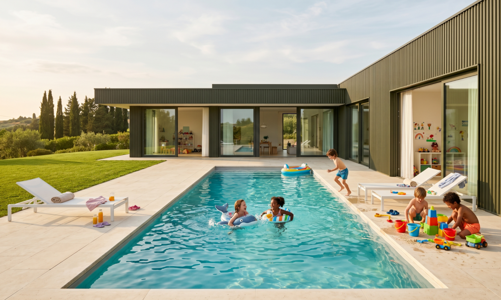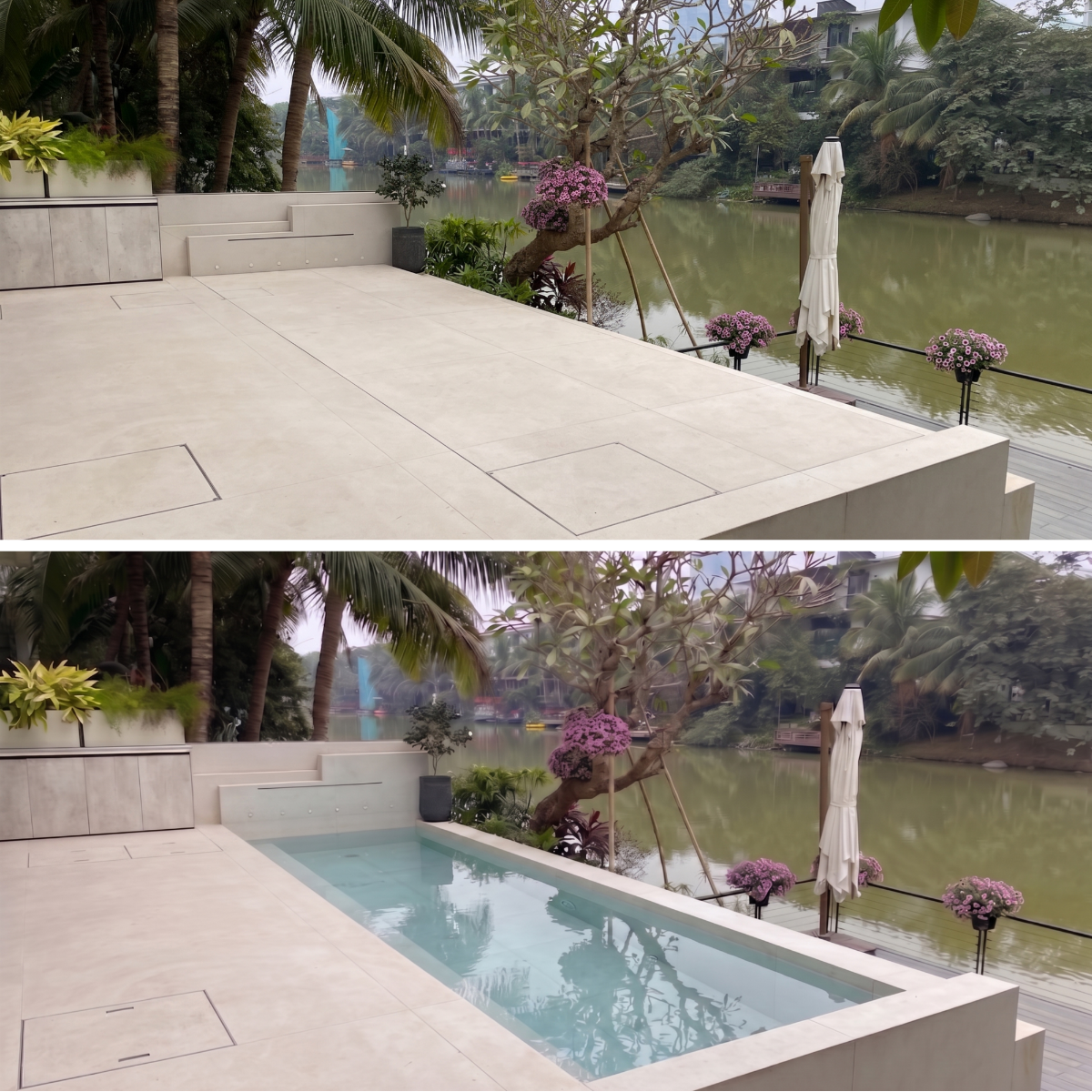 Trong bối cảnh đó, bể bơi nâng hạ là một giải pháp toàn diện. Không chỉ giúp tối ưu diện tích, hệ thống còn cho phép chuyển đổi linh hoạt giữa bể bơi và các không gian khác như sân vườn, khu vui chơi hay khu tiếp khách. Khi không sử dụng, bể bơi có thể “biến mất”, trả lại mặt sàn an toàn, gọn gàng và đa năng.