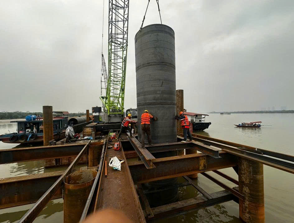Bên cạnh đó, Liên danh nhà thầu đang nghiên cứu điều chỉnh biện pháp thi công dầm chủ vượt sông Hồng, huy động tối đa nhân lực, trang thiết bị hiện đại, tổ chức thi công 3 ca, 4 kíp liên tục. Mục tiêu là rút ngắn thời gian thi công dầm chủ từ 23 tháng xuống còn khoảng 19 tháng, góp phần bảo đảm tiến độ chung của dự án.