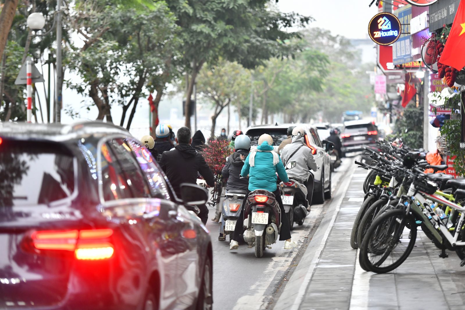 Áp lực giao thông cũng là nỗi ám ảnh của người dân. Vào khung giờ cao điểm, các tuyến đường bao quanh hồ Tây thường xuyên ùn tắc, dòng xe cơ giới dày đặc không chỉ gây quá tải hạ tầng mà còn phá vỡ sự bình lặng nơi đây..