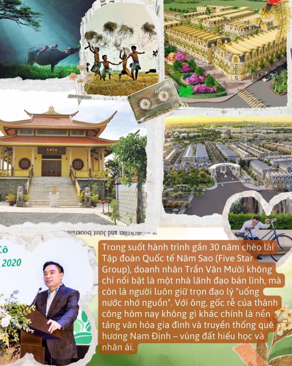 Nhân dịp Ngày Doanh nhân Việt Nam 13/10, Tạp chí Kiến trúc Việt Nam đã có cuộc trò chuyện thân tình với ông Trần Văn Mười – Chủ tịch Tập đoàn Quốc tế Năm Sao (Five Star Group). Không chỉ là một nhà lãnh đạo doanh nghiệp thành công với nhiều dự án tầm vóc, ông còn là người con nặng nghĩa với quê hương Nam Định (cũ) nay là Ninh Bình, một doanh nhân mang trong mình triết lý sống và làm việc thấm đẫm nhân văn.