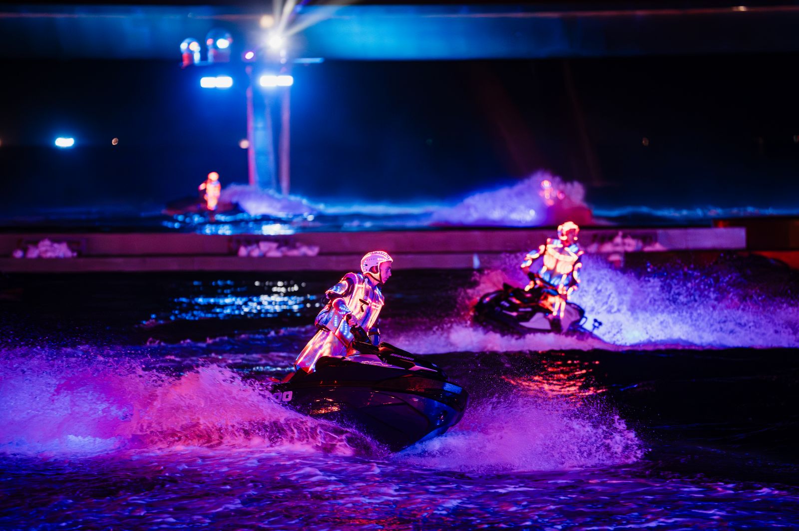 Mỗi khoảnh khắc đều được tính toán chính xác đến từng mili giây: ánh sáng, âm nhạc, nước và chuyển động của vận động viên hòa nhịp hoàn hảo, biến bãi biển Thị trấn Hoàng Hôn thành một sân khấu ngoài trời quy mô bậc nhất Việt Nam.