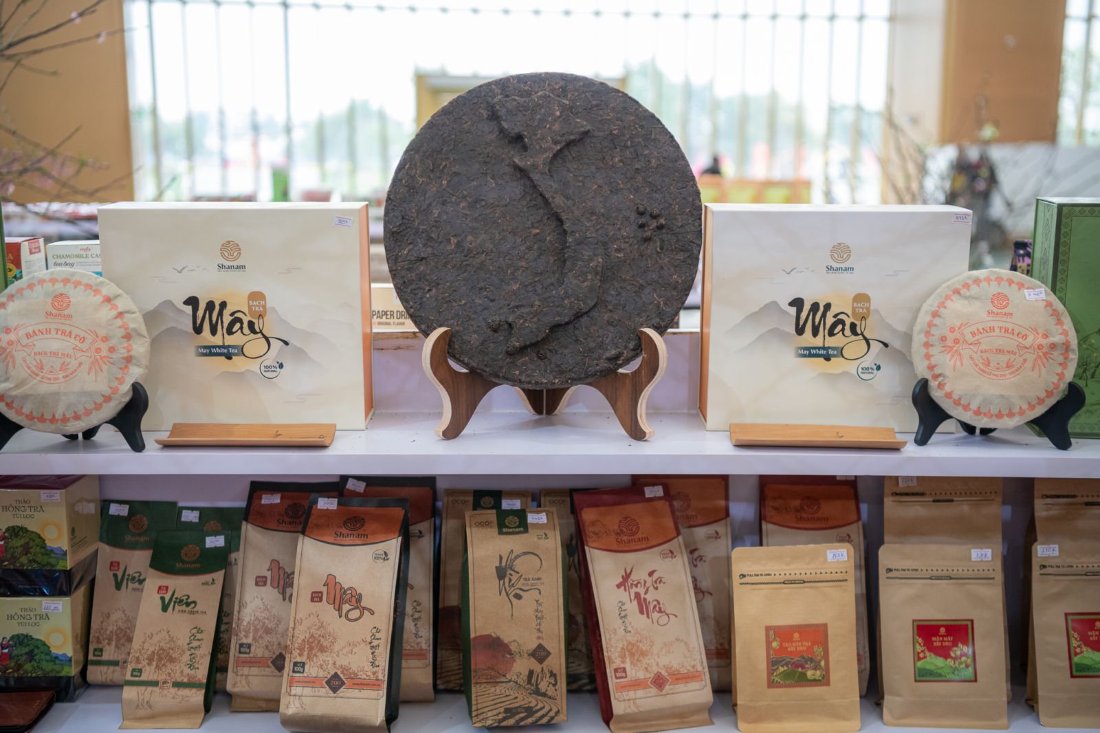 Điểm dừng chân đáng nhớ đầu tiên chính là gian hàng tỉnh Sơn La - nơi hương trà cổ thụ Tà Xùa mang đậm hơi thở của núi rừng Tây Bắc đủ sức níu chân cả những người sành trà khó tính.