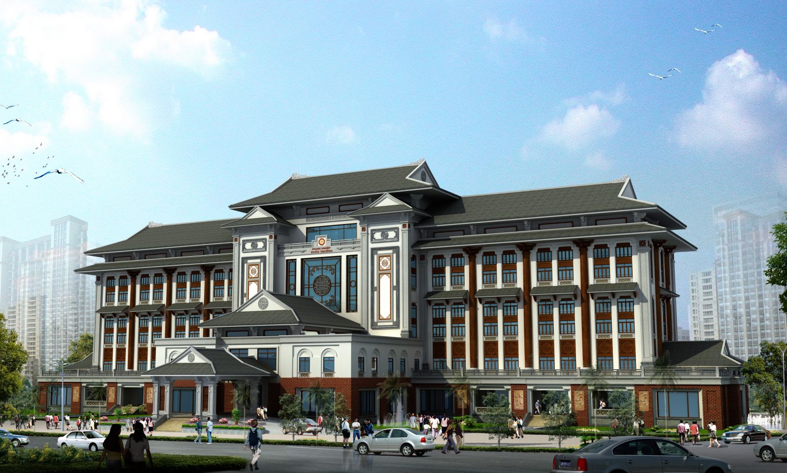 Với tổng thể công trình được xây dựng trên 4 mặt đường nên kiến trúc này không bị áp đặt quá mức bởi công trình đã xây dựng xung quanh. Mặt chính công trình được quay ra sông Sào Khê chảy từ Hoa Lư về Tràng An, Bái Đính có bố cục gồm: 1 sảnh giữa và 2 sảnh đầu hồi công trình. Công trình có tầng hầm và cao 9 tầng. Việc thiết kế (công trình có mái dốc truyền thống vốn phù hợp với công trình thấp tầng nhưng gắn với khối công trình cao tầng cần điều chỉnh bố cục mặt đứng với tỷ lệ kiến trúc phải rất linh hoạt và sáng tạo. Công trình có một sảnh đón rộng có mái ngói che lớn. Công trình có hai đường dẫn ô tô lên, xuống tiền sảnh lớn có mái che lợp ngói tương đương nhà 2 tầng cao.