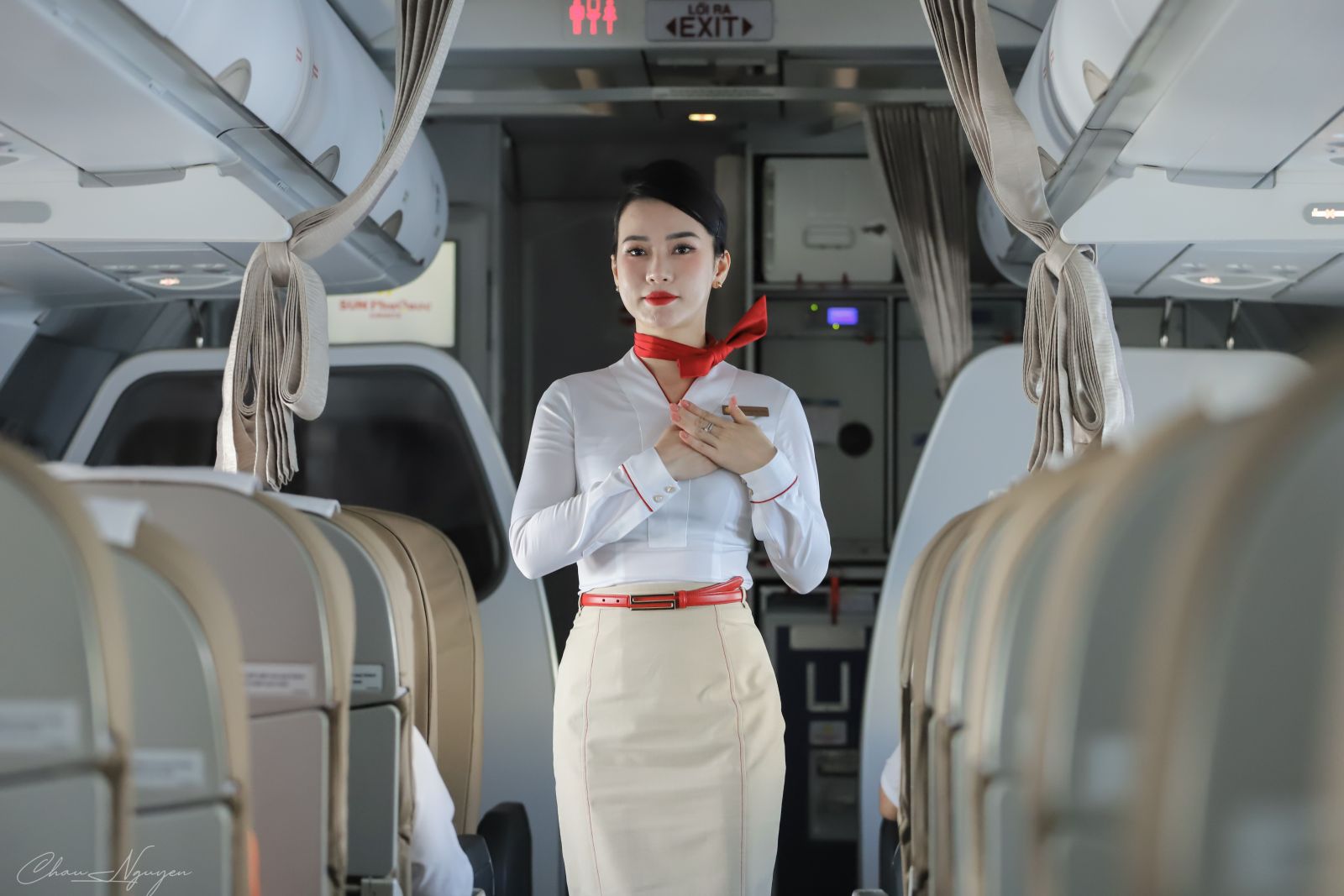 Với phong thái chuyên nghiệp và sự tận tâm chuẩn mực, mỗi tiếp viên Sun PhuQuoc Airways không chỉ thực hiện nhiệm vụ phục vụ mà còn truyền tải trọn vẹn văn hóa hiếu khách của hãng. Từng cử chỉ chào đặc trưng với hai tay đặt nơi trái tim, nụ cười rạng rỡ và phong thái phục vụ chuẩn mực đều phản ánh triết lý dịch vụ của hãng.