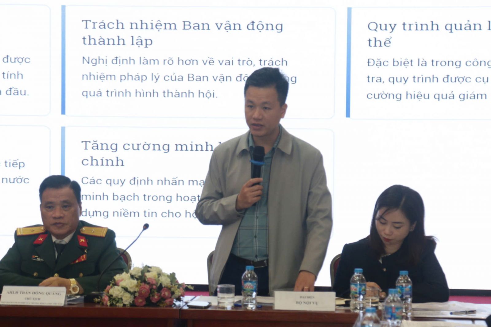 Một trong những nội dung được quan tâm là phần giới thiệu Nghị định 126/2024/NĐ-CP về quản lý hội. Trình bày nội dung này, ông Trần Minh Tân nêu rõ ba điểm mới mang tính đột phá: