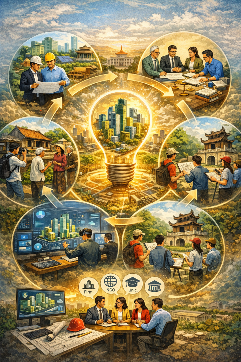 Bên cạnh đó, khoảng trống về “ngôn ngữ chung” còn thể hiện ở sự khác biệt trong cách tiếp cận vấn đề kiến trúc và đô thị. Trong khi nhiều đối tác quốc tế tiếp cận kiến trúc từ góc độ hệ thống, dựa trên dữ liệu và phân tích đa chiều, thì ở Việt Nam, cách tiếp cận vẫn còn thiên về kinh nghiệm, cảm tính hoặc chịu ảnh hưởng nặng nề bởi các ràng buộc hành chính. Sự khác biệt này, nếu không được nhận diện và điều chỉnh, sẽ làm giảm hiệu quả của hợp tác quốc tế và hạn chế khả năng học hỏi lẫn nhau.