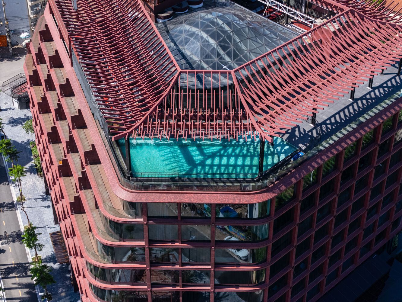 Cấu trúc mái càng làm nổi bật thêm câu chuyện kiến trúc này. Được thiết kế theo phương pháp tham số, nó tái hiện lại hình học nhịp nhàng của mái nhà thành một hình thức ba chiều hiện đại. Các yếu tố hình vòm và đa diện giúp tăng cường ánh sáng ban ngày và tạo ra một không gian nội thất nhiều lớp. Sự tương tác giữa ánh sáng và bóng tối – được gọi là "giai điệu của bóng tối" – định hình những khoảnh khắc trải nghiệm quan trọng bên trong khách sạn.
