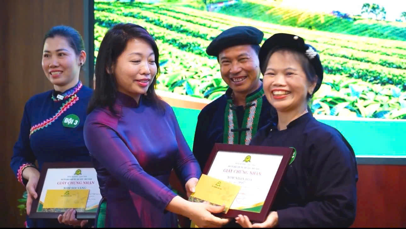 Bà Nguyễn Thị Hương Vân – Chủ tịch Hội đồng Quản trị, Giám đốc HTX Hương Vân Trà đã trực tiếp trao giải cho các đội thi đạt thành tích xuất sắc tại hội thi.