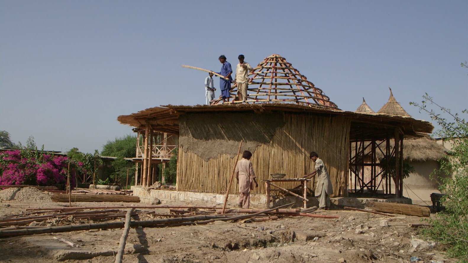 Tương tự, các dự án của Yasmeen Lar thường sử dụng các vật liệu sẵn có tại địa phương như bùn, tre, vôi và rơm. Lựa chọn này không chỉ giảm thiểu tác động đến môi trường mà còn giảm chi phí xây dựng và giúp người dân địa phương dễ dàng tiếp cận quy trình hơn. Những vật liệu này cũng rất phù hợp với các kỹ thuật bản địa mà cô ủng hộ, đảm bảo các công trình dễ xây dựng, sửa chữa và điều chỉnh, đồng thời thúc đẩy sự phù hợp về mặt văn hóa và tinh thần sở hữu.