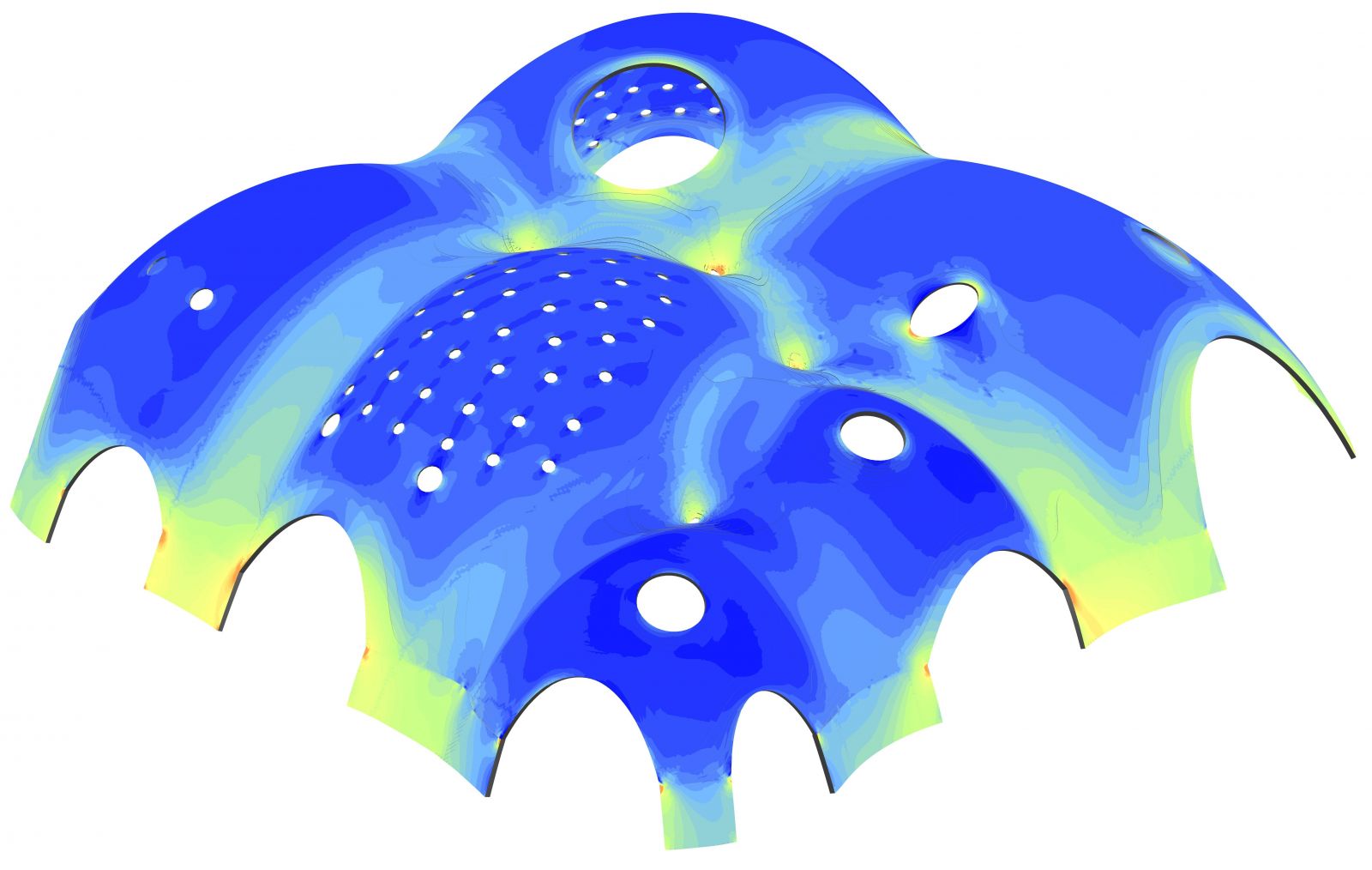 “Khi có bão hay động đất, vỏ mái sẽ có xu hướng dịch chuyển ngang. Chúng tôi đã sử dụng các phương pháp phân tích tiên tiến để kiểm tra từng phần nhỏ nhất của vỏ, nhằm đảm bảo không có hư hỏng xảy ra. Chúng tôi gọi đó là phân tích phi tuyến – một dạng phân tích rất phức tạp – để hiểu rõ hành vi kết cấu của mái khi chịu động đất hoặc gió lớn” – chuyên gia kết cấu đến từ Arup cho hay.