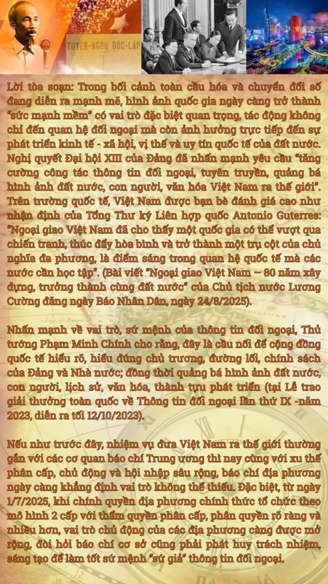Một trong những nhiệm vụ của báo chí đối ngoại là giới thiệu, quảng bá đất nước, con người, lịch sử, văn hóa, những giá trị vật chất và tinh thần của dân tộc Việt Nam, những thành tựu của công cuộc đổi mới đất nước, tiềm năng và hiệu quả trong hợp tác quốc tế giữa Việt Nam với các đối tác. Đây cũng là một trong những nội dung được đề cập tại Văn kiện Nghị quyết Đại hội XIII của Đảng: Tổ chức tốt công tác thông tin đối ngoại tuyên truyền, quảng bá hình ảnh đất nước, con người, văn hóa Việt Nam ra thế giới.Suốt hành trình dài thế kỷ, thực tế đã chứng minh, một trong những nhiệm vụ thường xuyên và quan trọng của báo chí cách mạng Việt Nam là làm “cầu nối” giữa Đảng với dân, giữa Việt Nam với thế giới. Báo chí đối ngoại đã thực hiện tốt nhiệm vụ cốt lõi của mình - đưa Việt Nam đến với thế giới và mang thế giới tới gần hơn với Việt Nam.