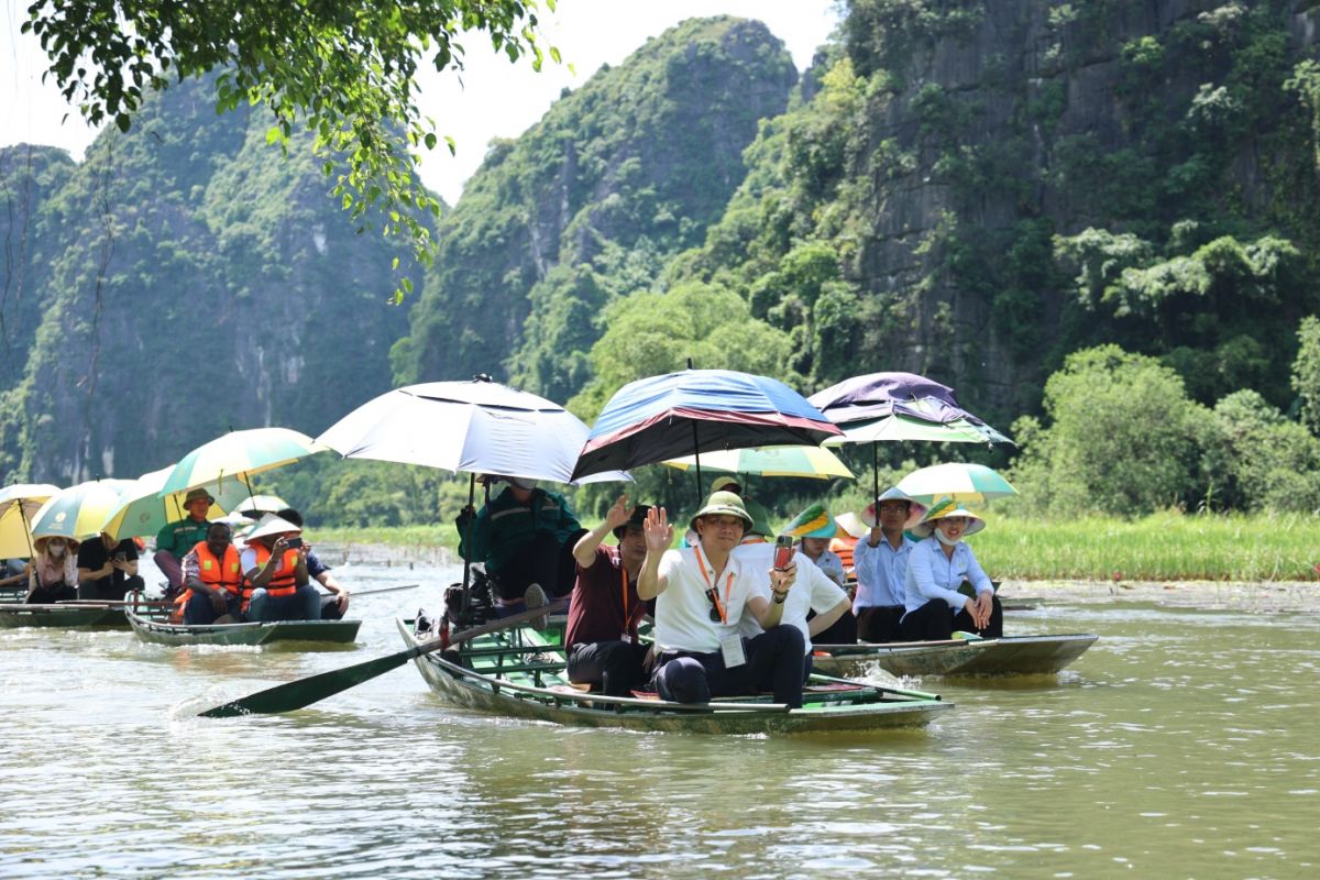 Du khách tham quan Tràng An – một trong những trọng điểm truyền thông du lịch của Ninh Bình trong quý I hằng năm.