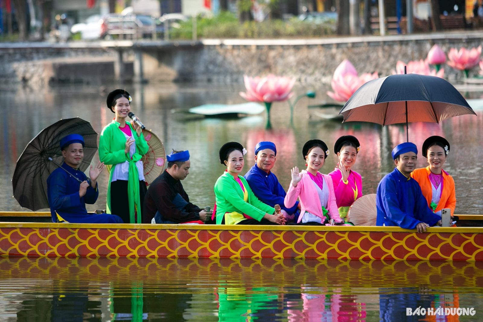 Các nghệ sĩ Nhà hát Chèo Hải Dương hát trên sông Sặt mỗi dịp Tết đến xuân về.