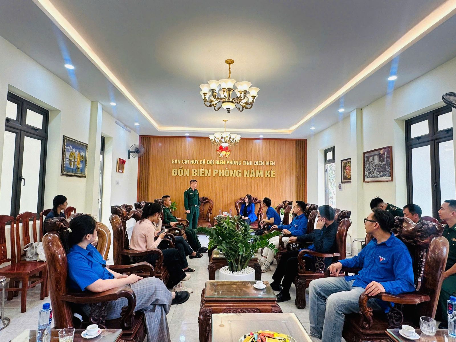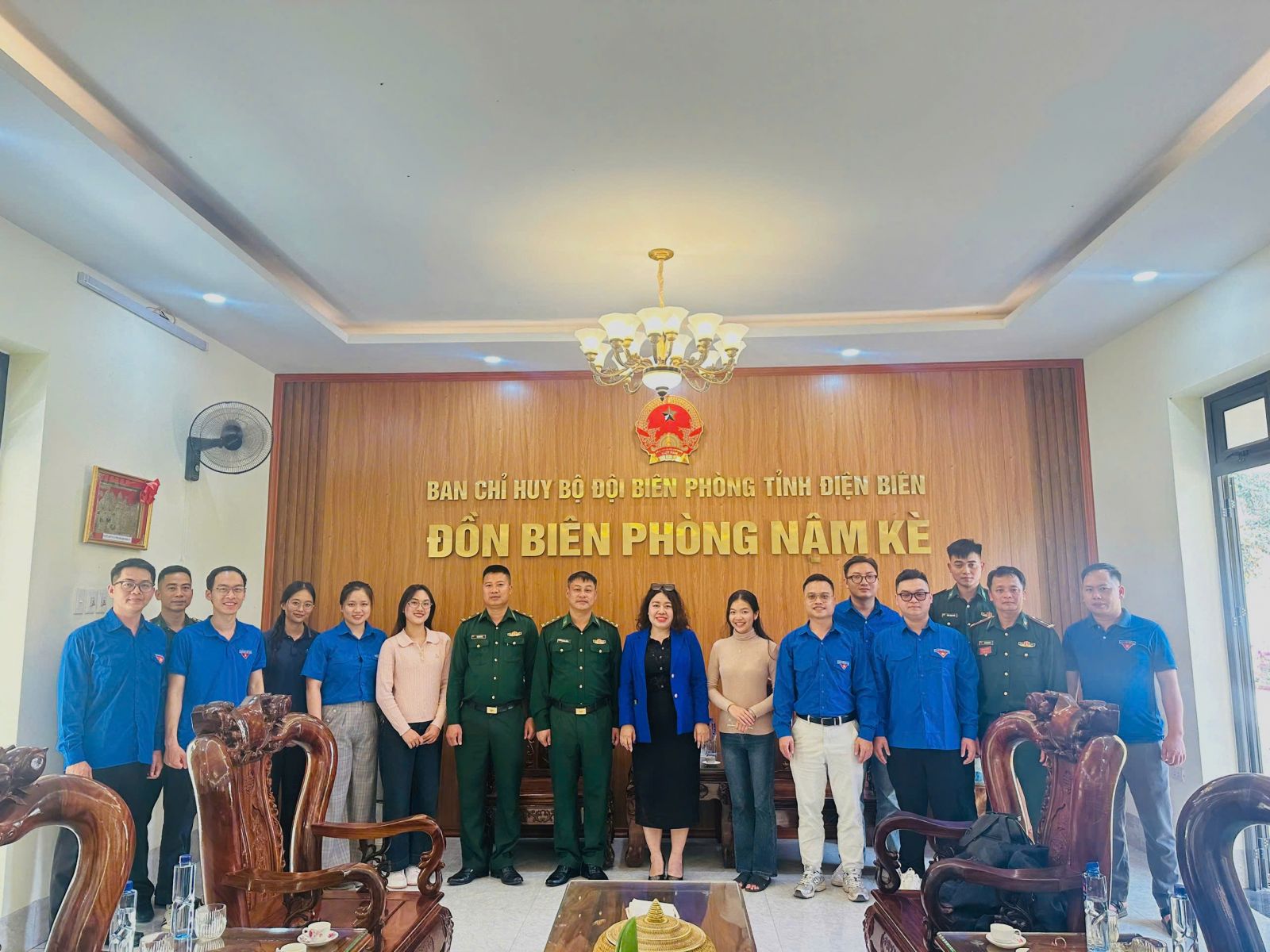 Đồng chí Nguyễn Thu Trang, Bí thư Đoàn Thanh niên Viện Kiến trúc Quốc gia cùng đoàn thăm và làm việc với Đồn Biên phòng xã Nậm Kè.