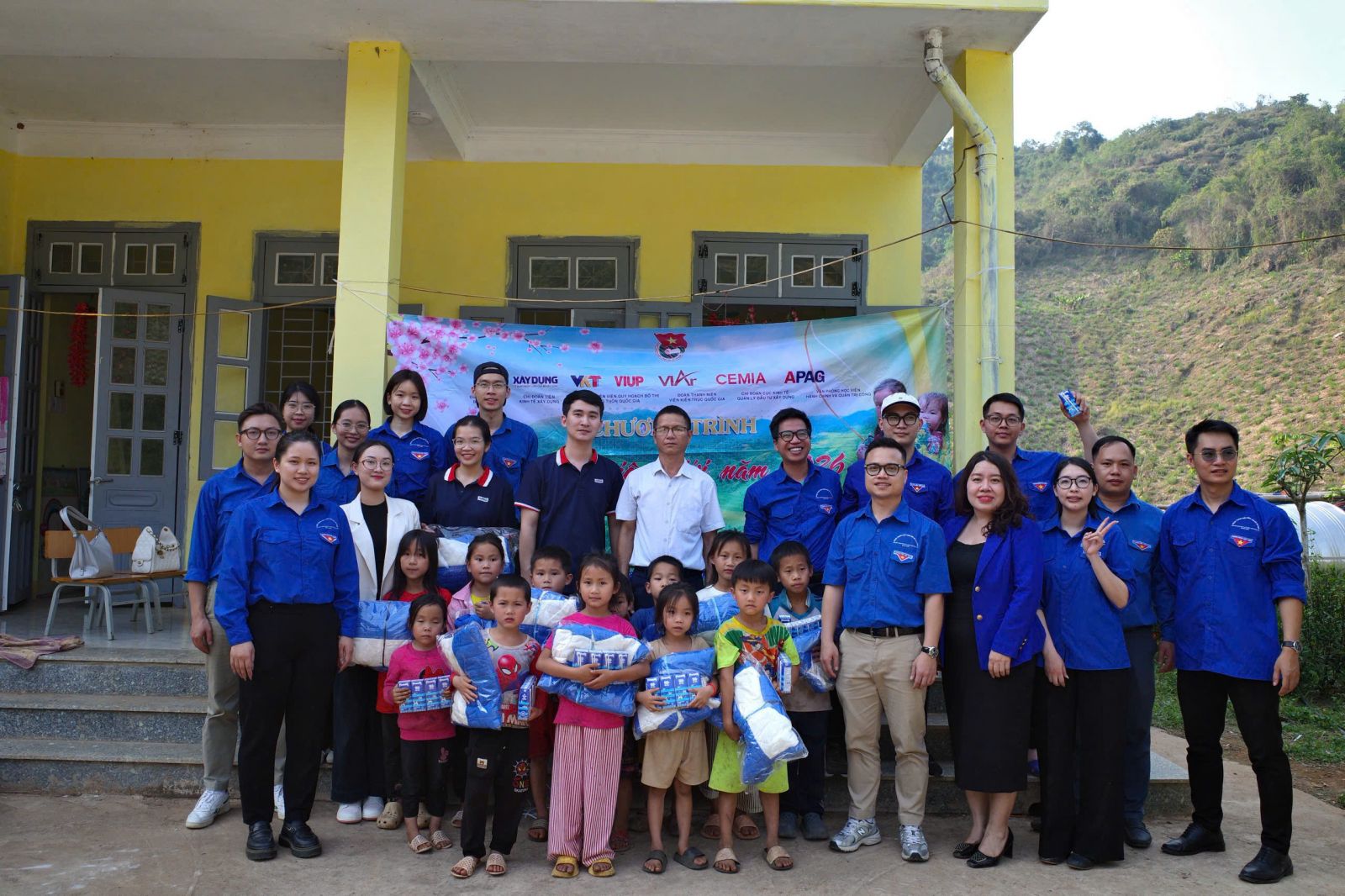 Song song với các công trình hạ tầng, đoàn công tác đã trao tặng 369 áo khoác ấm cùng nhiều đồ dùng học tập, sữa, bánh cho học sinh mầm non và tiểu học tại các điểm trường trên địa bàn. Đặc biệt, 6 trẻ em mồ côi đã được hỗ trợ quà tặng thiết thực và kinh phí sinh hoạt, thể hiện sự quan tâm sâu sắc tới những hoàn cảnh khó khăn.