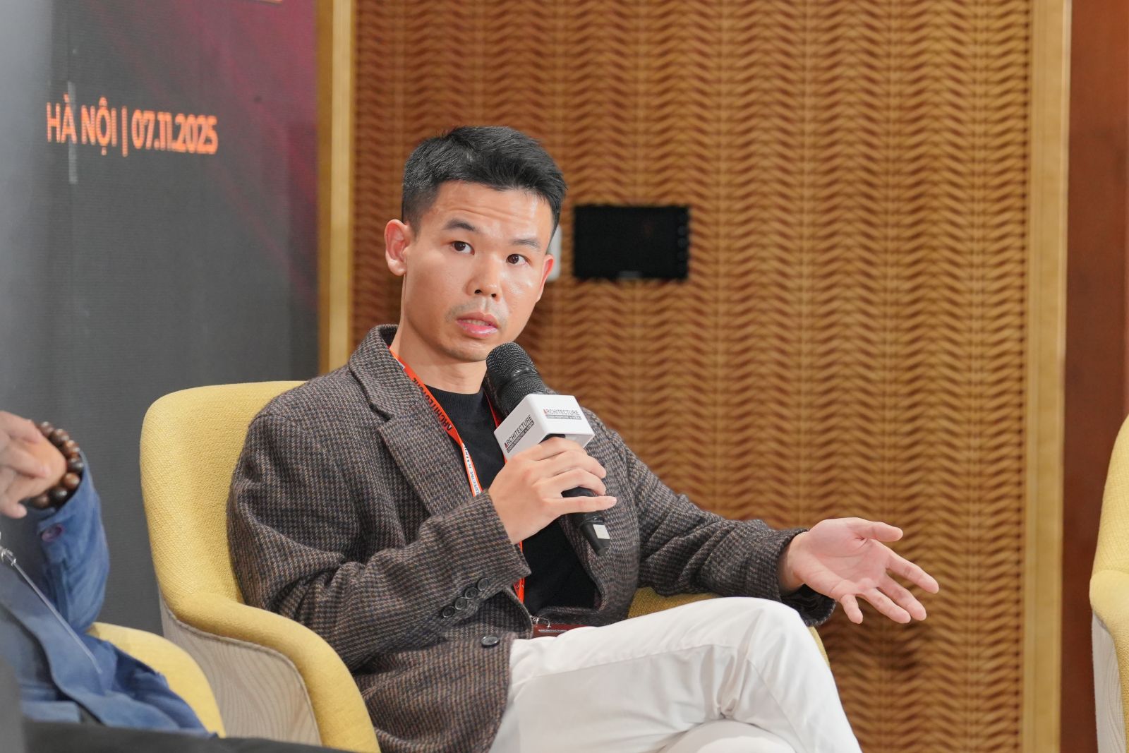 Nối tiếp chuỗi tham luận, KTS Nguyễn Tiêu Quốc Đạt và KTS Chu Kim Đức - Hai nhà sáng lập Think Playgrounds mang đến góc nhìn gần gũi và thực tiễn qua tham luận “Đa dạng sinh học cho một đô thị khỏe”. Bài trình bày nhấn mạnh vai trò của thiên nhiên như một hạ tầng sống. Thông qua các dự án rừng mini, công viên cộng đồng và tuyến sinh thái ven sông Hồng - những mô hình gợi mở khả năng kết nối con người, thiết kế và tự nhiên trong kiến tạo đô thị khỏe mạnh, bền vững.