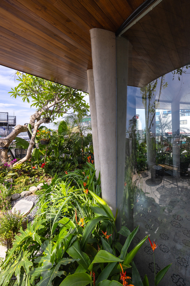 Dự án được thực hiện bằng bê tông đúc tại chỗ nguyên khối. Kết hợp với các vật liệu tự nhiên như đá và gỗ, công trình mang đến vẻ ấm áp mộc mạc và sự kết nối chặt chẽ với thiên nhiên. LYM SPACE còn đóng vai trò như một điểm nhấn thị giác - một ốc đảo xanh tươi đan xen giữa cảnh quan đường phố - cải thiện môi trường, làm phong phú thêm cảnh quan đô thị và khơi dậy tinh thần tích cực trong thành phố.
