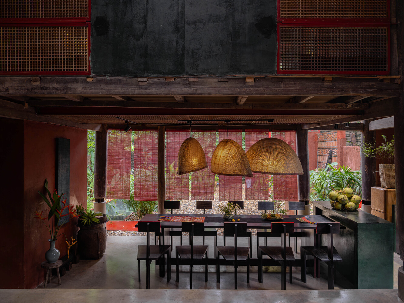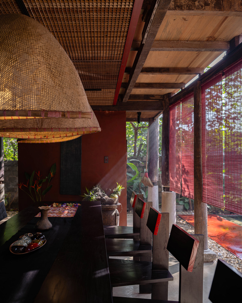Yếu tố Đất trong kiến trúc chính là đất, vật liệu từ đất. Tường đất truyền thống với màu sắc hiện đại và đậm chất địa phương giúp tạo nên không gian hài hòa, ấm cúng, đảm bảo hiệu quả cách âm, cách nhiệt. Đây là kỹ thuật rất đặc trưng của tác giả đã được áp dụng trong nhiều dự án. Tường đất thủ công giúp công trình có vi khí hậu tự nhiên, tự làm mát thụ động, hướng đến công trình xanh bền vững.