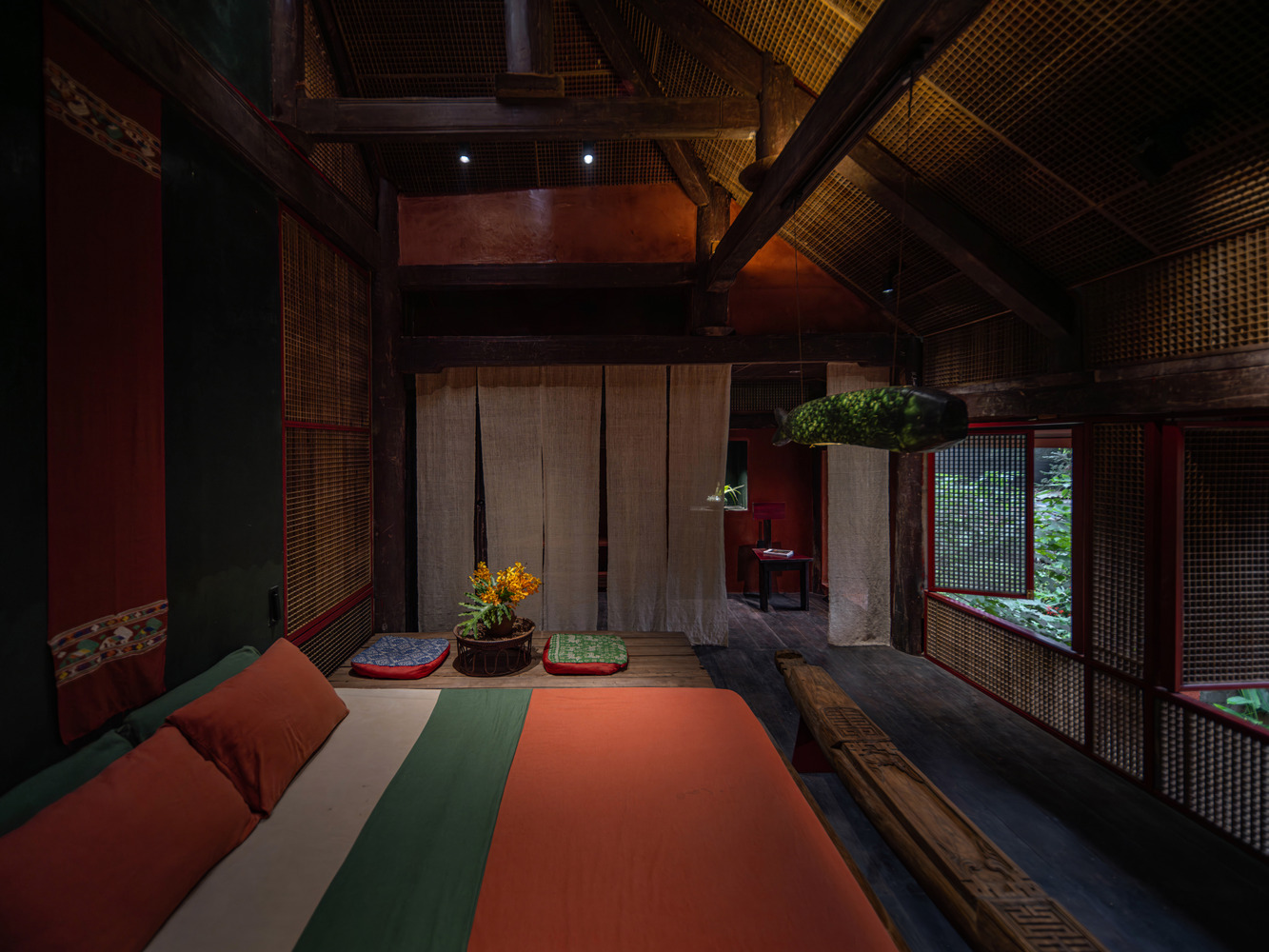 Không gian tâm trí – Đường Lâm, nơi nổi tiếng với đá ong, những ngôi nhà Bắc Bộ truyền thống, và bố cục làng cổ kính với “cây đa, bến đò, sân đình”. Bất cứ ai thuộc thế hệ người Đoài trước đây đều có thể hình dung ra vẻ thô ráp, mát lạnh của đá ong, mùi gỗ cũ kỹ từ những cột nhà, xà nhà, xà gồ… Tại MÔ he'ritage, chỉ cần thả hồn vào từng ngóc ngách, từng chất liệu… là bất chợt nhận ra kiến trúc xưa vẫn còn đó, rất đẹp, rất nguyên vẹn, rất hiện đại, và vẫn rất tiện nghi.
