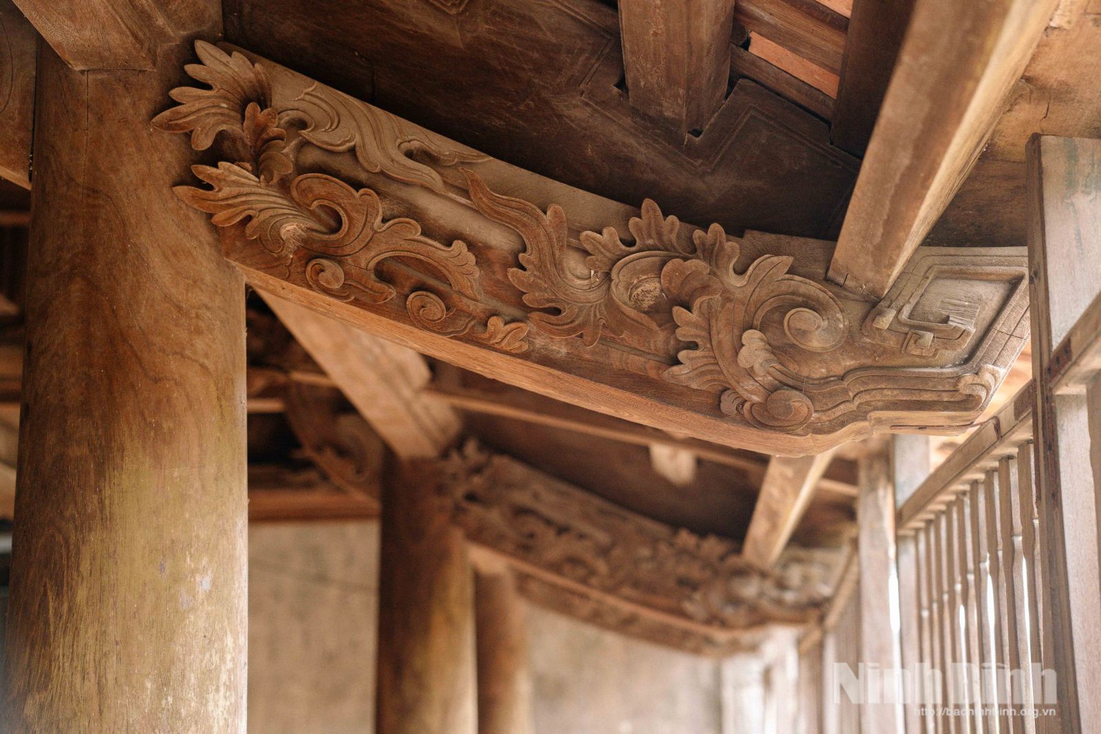 Các chi tiết chạm khắc tinh xảo trên gỗ vẫn được giữ nguyên vẹn, không bị mối mọt.