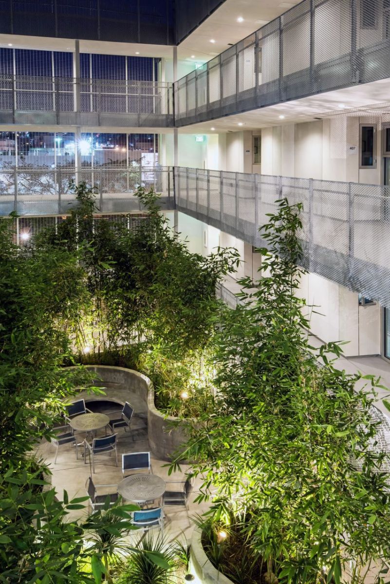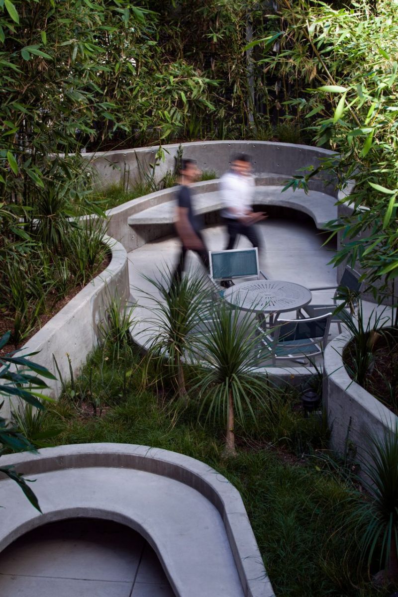 Giống như sân trong và ban công riêng của mỗi căn hộ, không gian ngoài trời được thiết kế nhằm tạo sự kết nối với thiên nhiên bên ngoài cũng như giữa cư dân với nhau.
