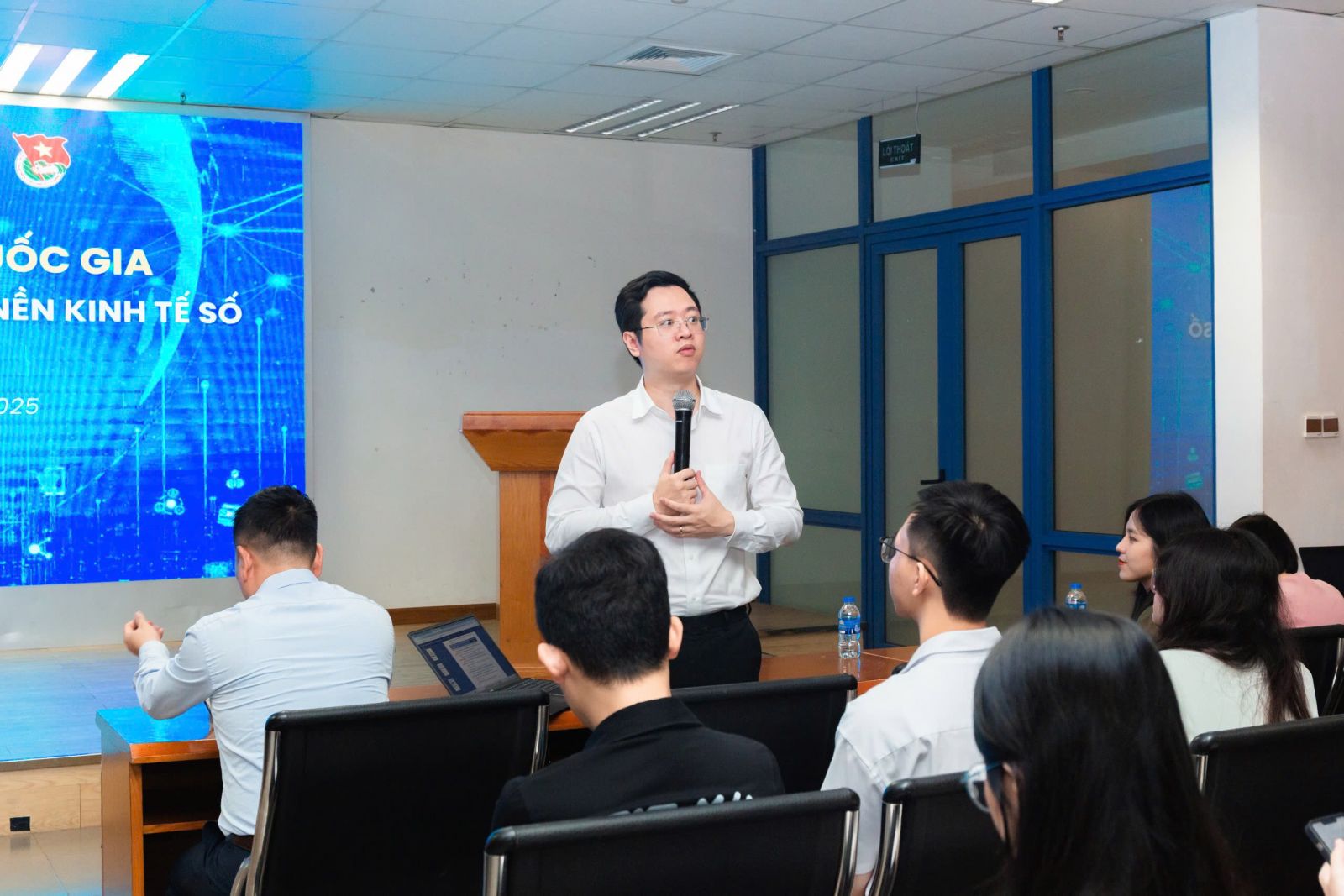 Phát biểu khai mạc, GS.TS Nguyễn Thành Hiếu – Phó Giám đốc Đại học Kinh tế Quốc dân nhấn mạnh: Trong thời đại thông tin bùng nổ, trí thức trẻ không chỉ là nguồn lực quý giá mà còn là những người tiên phong dẫn dắt sự thay đổi, đặc biệt trong lĩnh vực công nghệ và giáo dục. Trí thức trẻ cần không ngừng học hỏi, cập nhật tri thức mới, có tầm nhìn xa, khả năng phân tích nhanh và ứng dụng công nghệ vào thực tiễn, từ đó góp phần xây dựng xã hội tri thức và phát triển bền vững.
