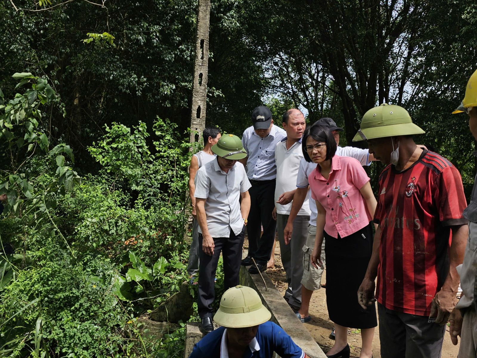 Lãnh đạo Phường Thiên Trường cùng cán bộ, lực lượng chức năng tiến hành kiểm tra thực địa, chỉ đạo công tác gia cố, chằng chống bờ đê.