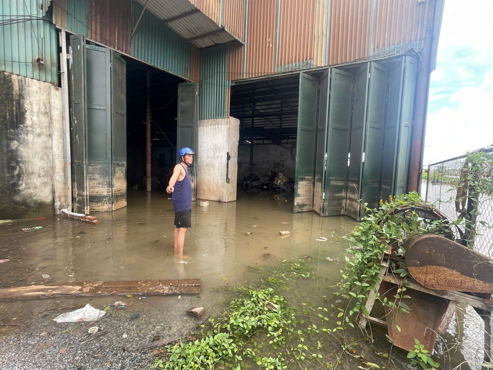Nhiều xưởng sản xuất ven sông tại phường Thiên Trường bị nước lũ tràn vào, ngập sâu trong nhiều ngày.