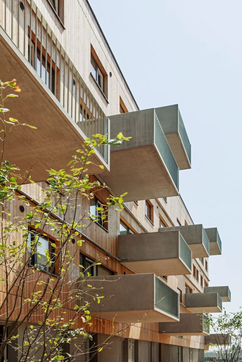 Được bố trí theo một loạt các khối ốp gỗ với ban công bê tông nhô ra xung quanh sân trong, D12 được Berger + Parkkinen và Querkraft Architekten hình thành như một sự tiếp nối và phát triển di sản nhà ở xã hội phong phú của Vienna.