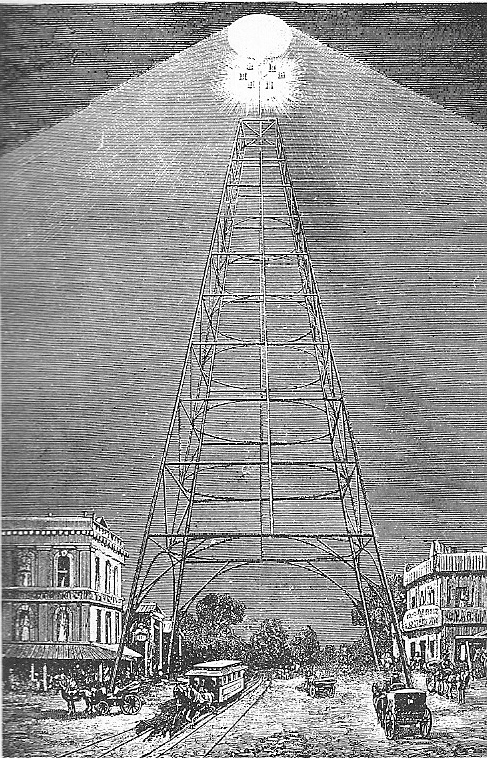Bên cạnh chi phí, đèn hồ quang còn bị chỉ trích vì gây chói mắt người đi bộ, tạo ra nhiều ánh sáng hơn mức đường phố có thể hấp thụ. Do đó, việc thay thế đèn đường cũ bằng đèn hồ quang không phải là một lựa chọn khả thi. Việc treo đèn ngoài tầm nhìn tiêu chuẩn đồng nghĩa với việc cần phải lắp đặt các trụ đèn mới cao hơn. Độ sáng của công nghệ mới này đã khơi dậy những ý tưởng không tưởng mới: nếu cả thành phố được chiếu sáng, không còn những con phố mờ ảo nữa, chỉ cần một vài ngọn đèn thành phố được đặt cao trên nền đất, chiếu sáng đồng đều mọi thứ thì sao? Ý tưởng về tháp đèn đã được ghi nhận vào đầu những năm 1800 tại Cộng hòa Pháp, nhưng khái niệm này đã được đón nhận rộng rãi hơn tại Hoa Kỳ.