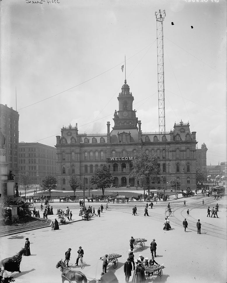 Nhiều thị trấn ở Mỹ, đặc biệt là vùng Trung Tây, đã lắp đặt các tháp hoặc cột đèn cao từ 50 đến 150m, từ đó những ánh đèn hồ quang mạnh mẽ chiếu sáng toàn bộ thị trấn. Ngay sau đó, Detroit trở thành thành phố lớn duy nhất trên thế giới được chiếu sáng hoàn toàn bằng hệ thống tháp đèn. Được lắp đặt cách nhau 350 đến 400m ở trung tâm thành phố, hoặc 1000m ở ngoại vi, những tháp đèn này tạo ra những vành đai ánh sáng bao phủ toàn bộ các khu vực, một "Xứ sở thần tiên của sự bình đẳng". Chưa đầy ba mươi năm sau khi lắp đặt, hệ thống chiếu sáng tháp đèn của Detroit đã được thay thế bằng "đèn đường" thông thường, như một nhà bình luận mô tả là "ngoạn mục hơn là hiệu quả".