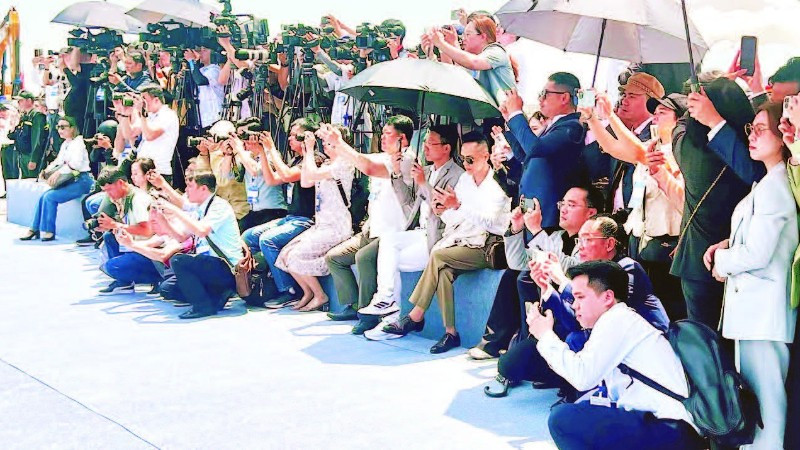 Phóng viên kinh tế tác nghiệp tại Diễn đàn Doanh nghiệp Việt Nam – nơi báo chí và doanh nghiệp cùng trao đổi, chia sẻ giải pháp phát triển bền vững.