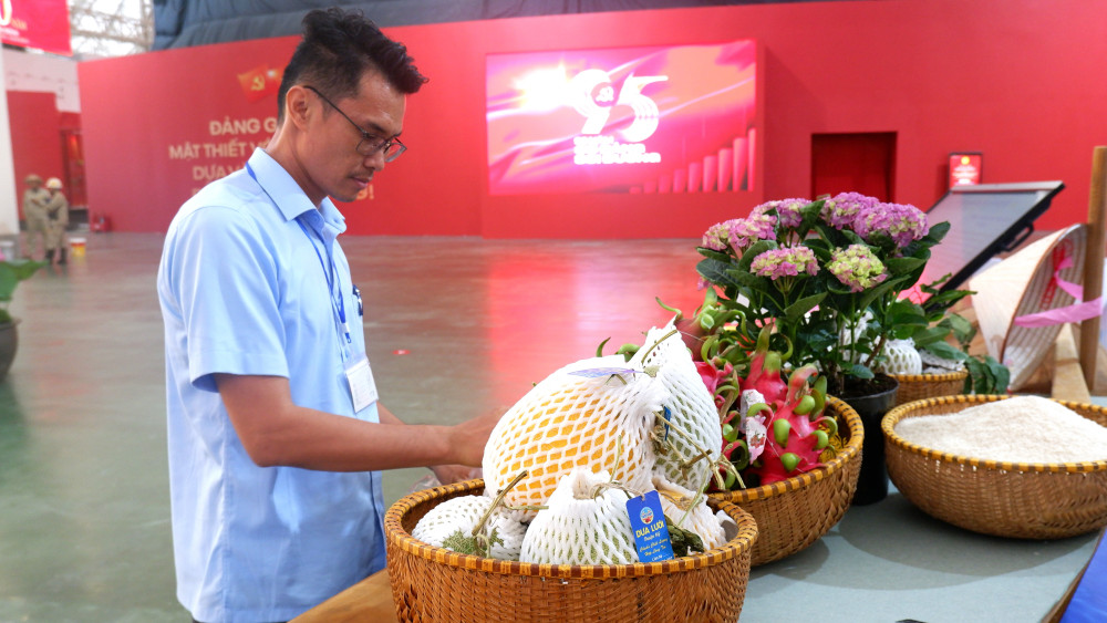 Trái cây Tây Ninh được trưng bày tại triển lãm.