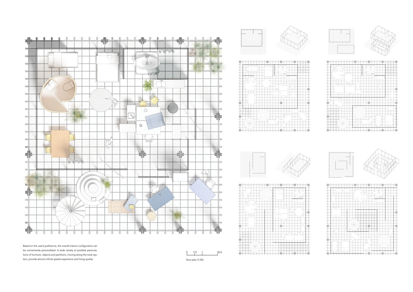 Việc tiếp cận nhà ở module thông qua các cuộc thi thiết kế mang đến một góc nhìn, qua mỗi lần lặp lại, lại giới thiệu những ý tưởng mới cho hệ thống xây dựng, với hiệu suất cho phép thay thế hoặc bổ sung các yếu tố mà không ảnh hưởng đến phần còn lại của hệ thống. Sự linh hoạt này khuyến khích việc khám phá những ý tưởng mới về nhà ở, một khái niệm quen thuộc với tất cả mọi người và do đó luôn được thử thách. Thông qua việc phân tích các trường hợp trong quá khứ và tương lai, nhà ở module hiện lên như một bức tranh trắng tinh khôi, khéo léo cân bằng giữa tiêu chuẩn hóa và tùy chỉnh trong cuộc sống đương đại.