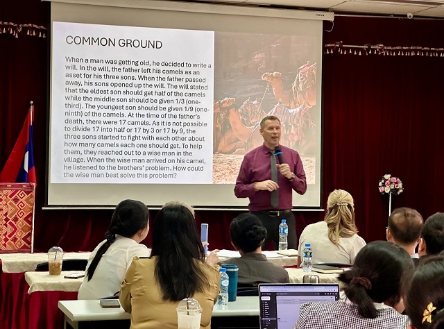 Tiến sĩ Dieter Bruhn trình bày chuyên đề về giảng dạy và học tập với trí tuệ nhân tạo (AI) trong bối cảnh giáo dục hiện đại tại Lào.