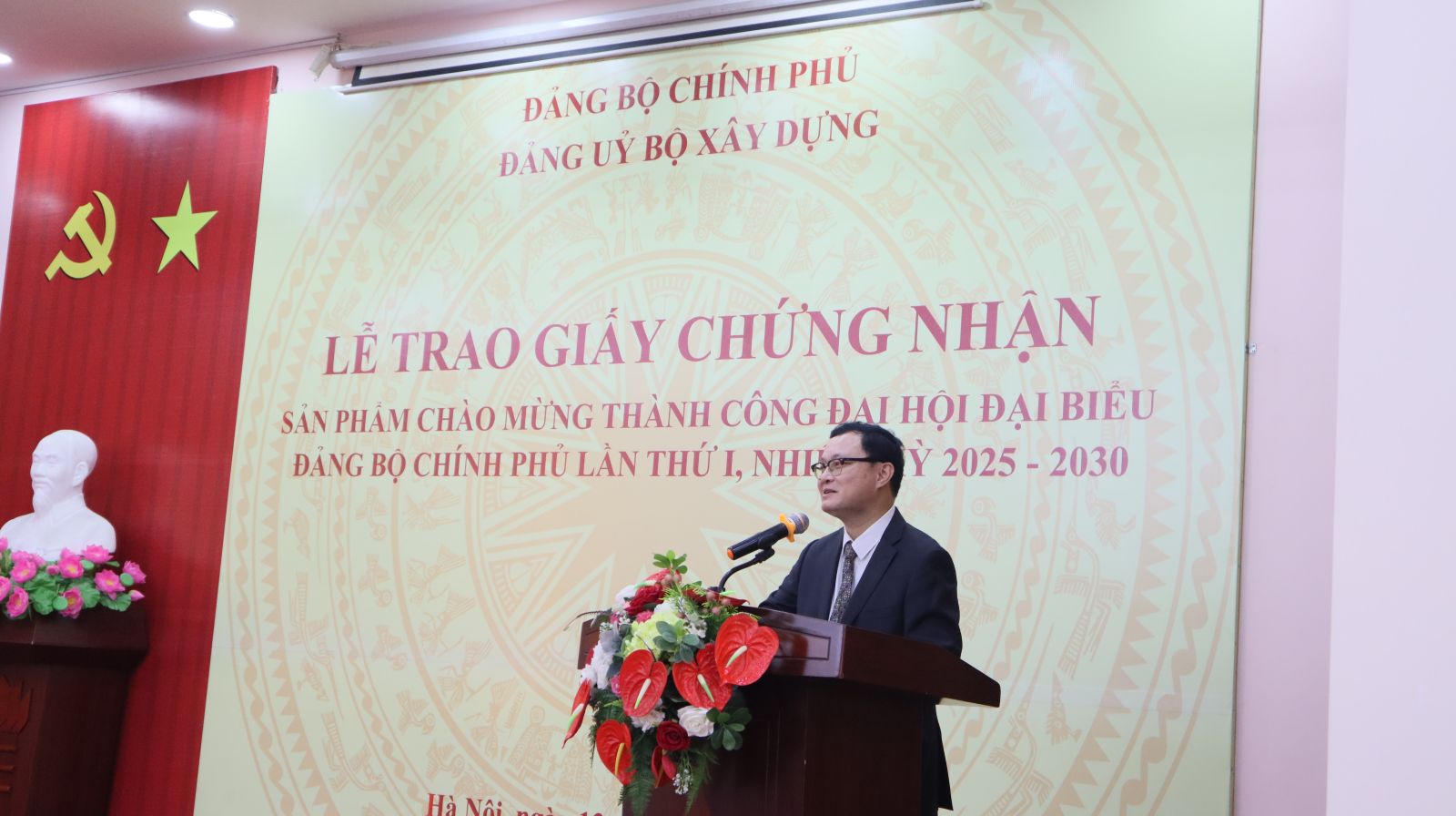 Trao Quyết định và Giấy chứng nhận sản phẩm ngành Xây dựng chào mừng Đại hội đại biểu Đảng bộ Chính phủ lần thứ I