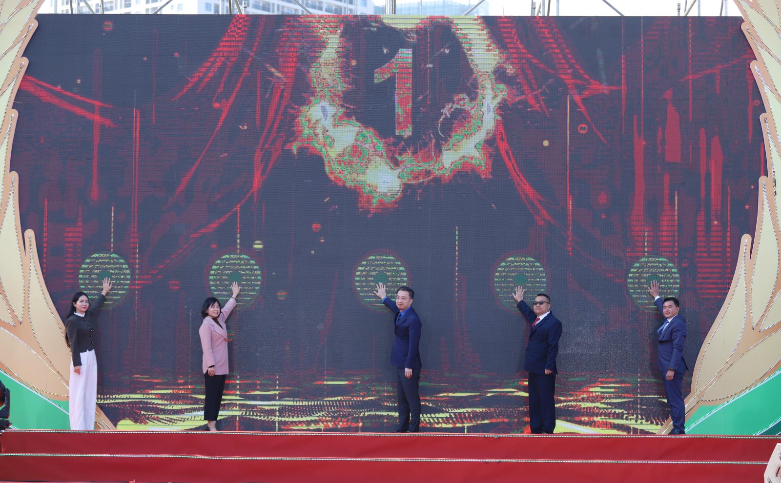 Các đại biểu thực hiện nghi thức khai mạc Triển lãm quảng bá các sản phẩm khởi nghiệp, thúc đẩy tiêu thụ sản phẩm của thanh niên năm 2025.