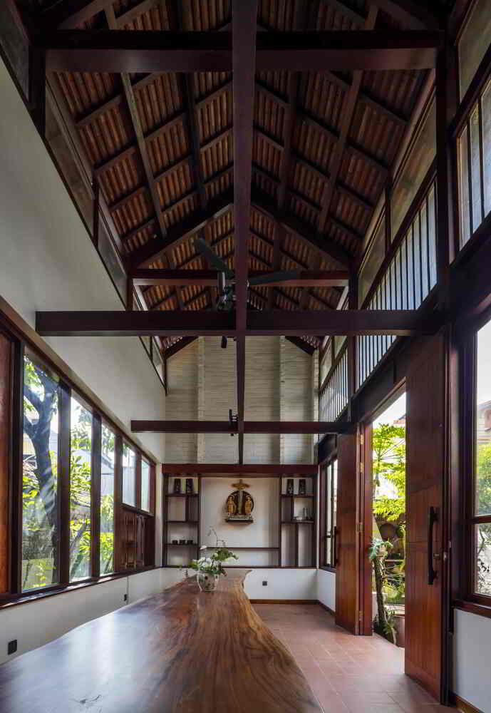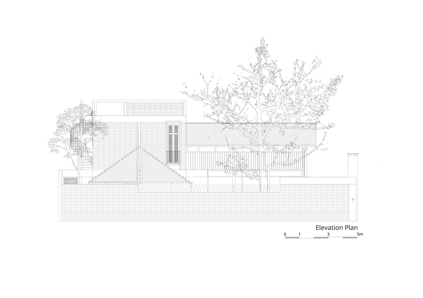 Những cây cổ thụ được chủ nhà trồng cách đây hai thập kỷ được bảo tồn cẩn thận và trở thành yếu tố chính định hình bố cục. Những thói quen thường ngày - những cuộc trò chuyện dưới hiên nhà, sự hiện diện của cây cối và nước, vườn tược, và mùi bếp củi là những yếu tố tạo nên vẻ đẹp của cuộc sống nông thôn và dễ dàng nhận thấy trong kiến trúc nông thôn truyền thống - cũng đang dần phai nhạt dưới sự đô thị hóa nhanh chóng, thiếu kiểm soát của các loại hình nhà ở mới.