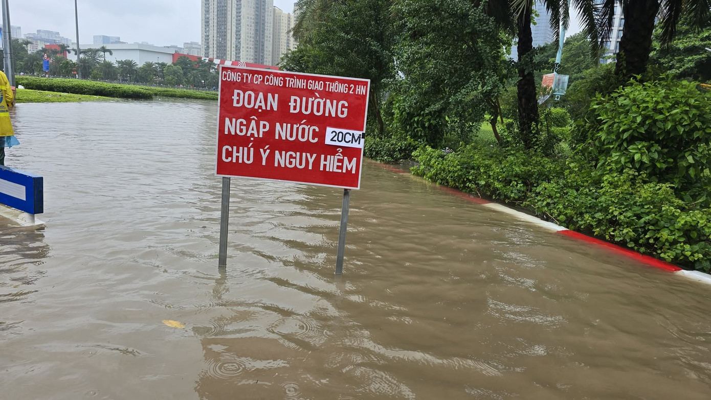 Nhiều tuyến đường ngập sâu lực lượng chức năng phải dựng biển cảnh báo.