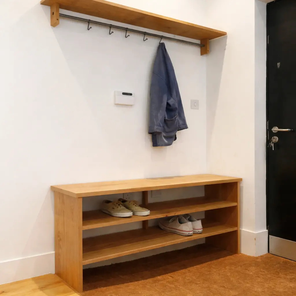 Bí quyết: Đầu tư vào một chiếc tủ đựng giày. Không giống như các kệ mở, tủ kín che giấu màu sắc và chất liệu của giày dép, giúp giảm ngay lập tức "cảm giác rộng rãi" của không gian.