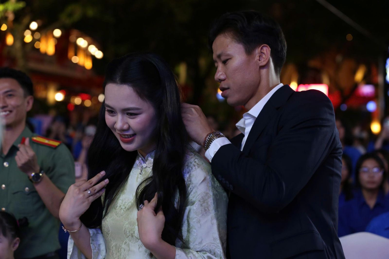 Cầu thủ Quế Ngọc Hải trao tặng vợ Dương Thị Thùy Phương món quà yêu thương.